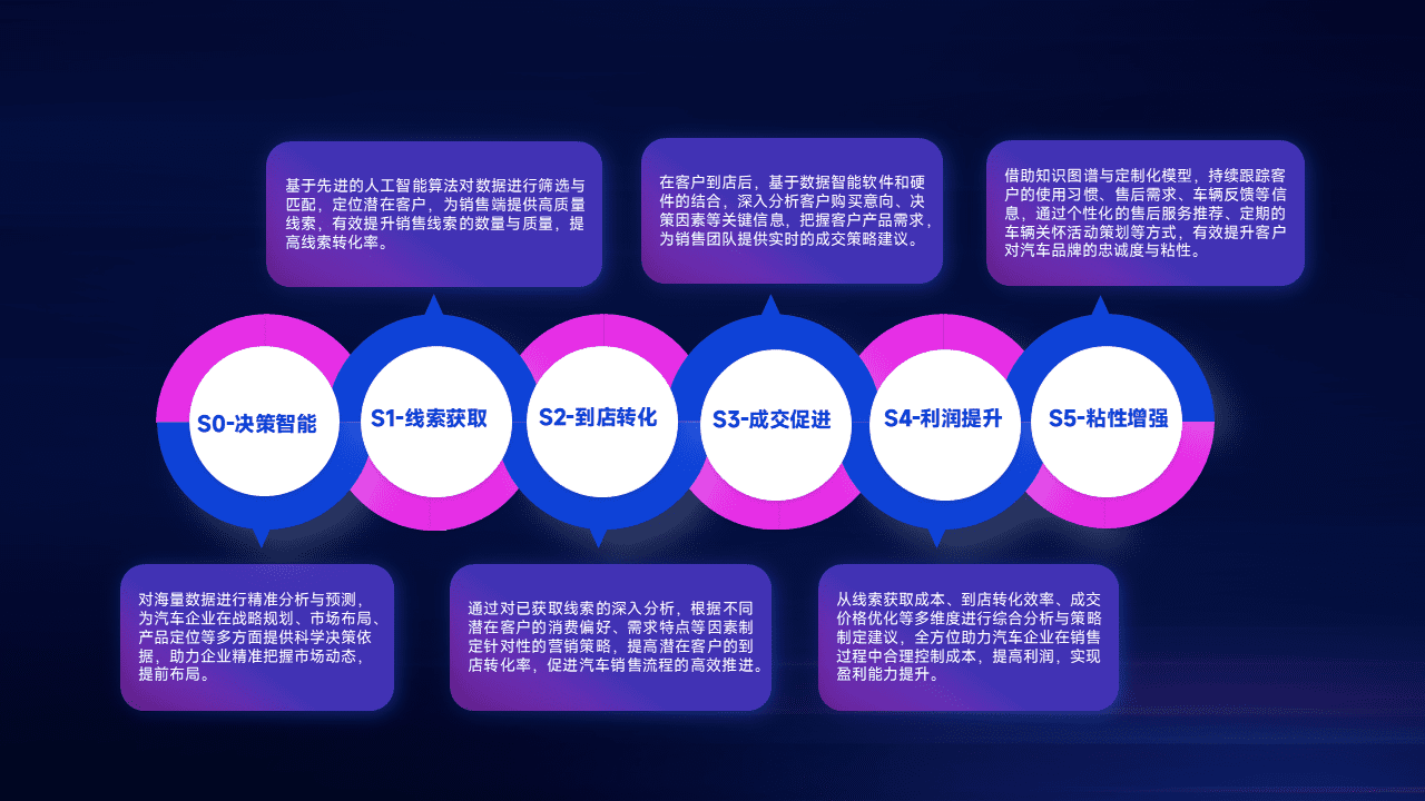 通过拓宽潜在客户来源、、优化线索分配并提高到店转化率,,以增强销售效率。。。同时,,利用线索数据不断优化分析模型,,,,有效提升转化率,,,,扩大营销影响力。。。